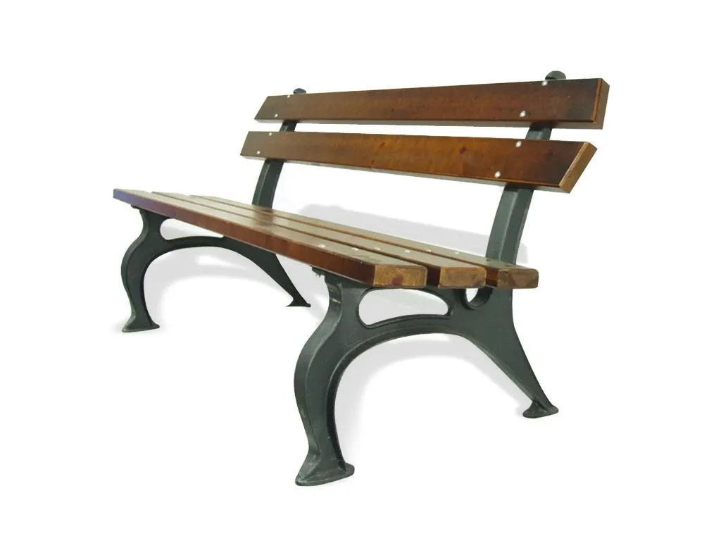 Panchina classica arredo città tipo Firenze con supporti in ghisa e listoni in legno Pino colore noce scuro.